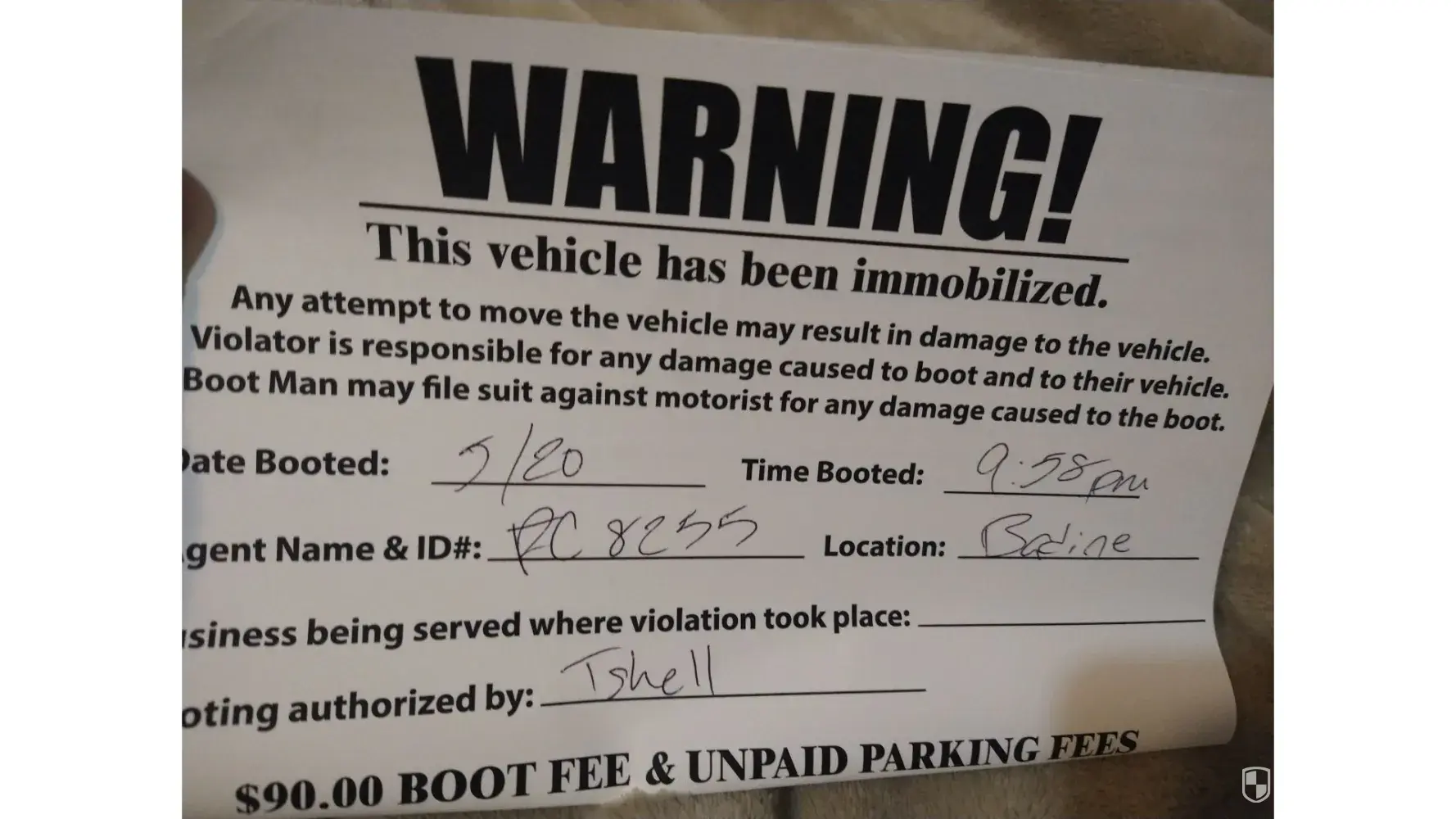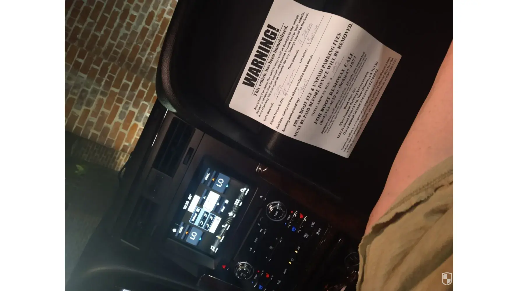 I told him I was happy to pay the parking fee, and that I was just confused. Again, with no eye contact and no empathy he just indicated my only choice was to pay him to unlock the boot or to call a wrecker company and incur those fees. He had his clipboard and pen ready for me to pay. He was with Premier Parking Enforcement.