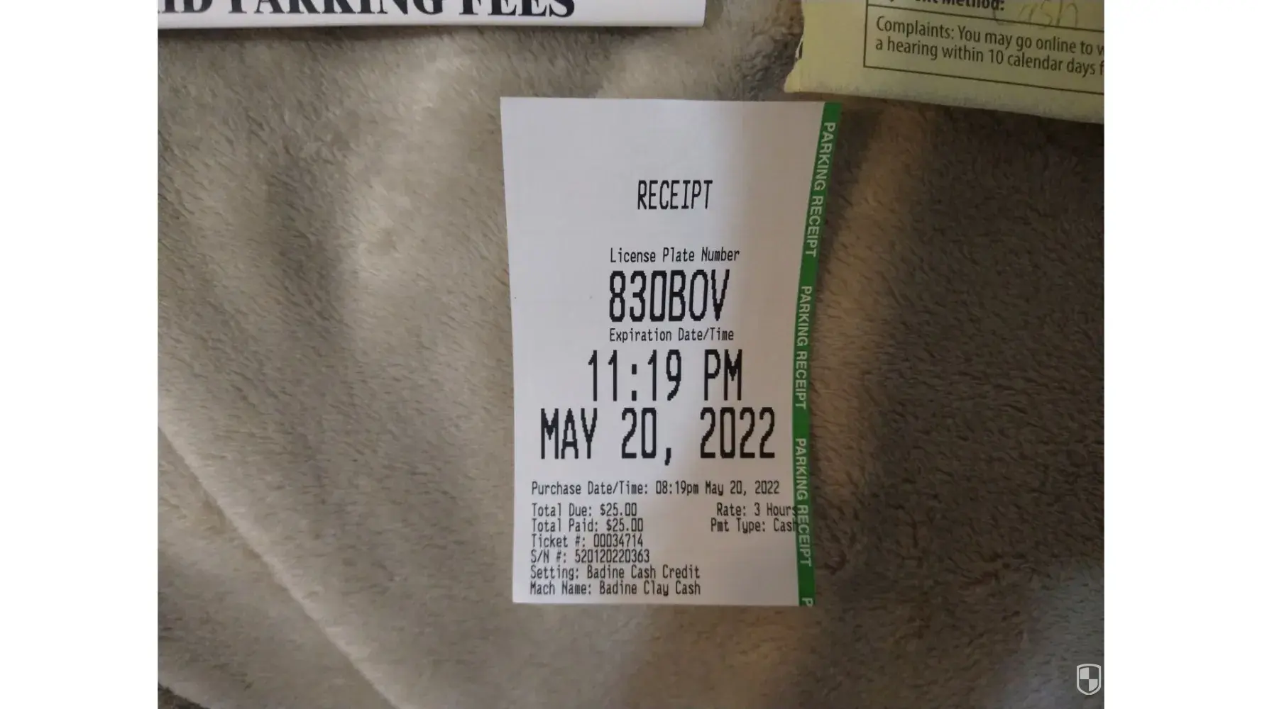 I called the number on the ticket after my son took a picture of the timestamp on my paid parking receipt, a screenshot of the time on his phone, and the note from the parking company with its timestamp.