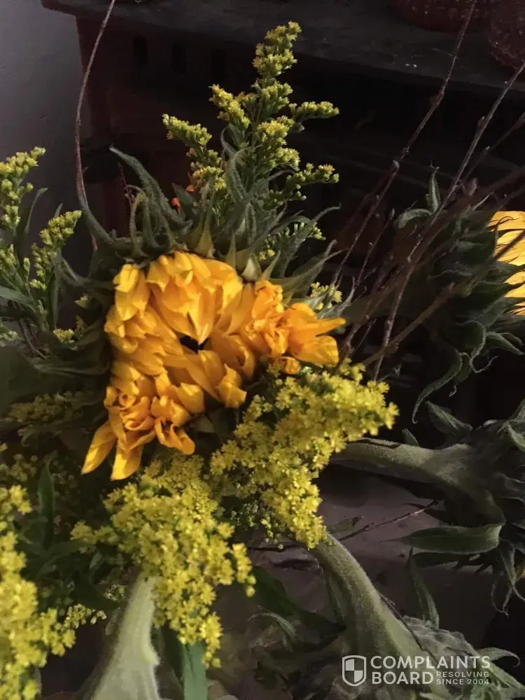 I also had the same problem . Dead sunflowers delivered and the only offer was a five pound voucher . Avoid this awful company . Attached is a photo of the flowers when they arrived - dried up and half dead . First picture is what was sent . Second picture is off their website . Hardly comparable really