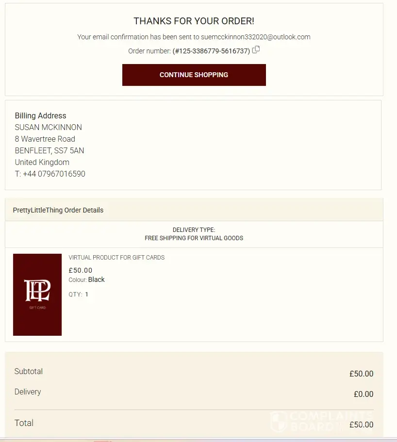 On October 25th I brought items of PrettyLittleThing using my remaining gift card balance and own money. The order however did not process but had still taken my money and I also never received an order number. The bank refunded my money back automatically within a few days, however, the remaining gift card balance was never refunded. This amount that was not refunded was £20.50. I’ve tried to ask the customer support team multiple times and I get the same generic answer. It’s just frustrating because I had never received the order number as I wasn’t provided with me so I’m not sure if that’s why I’m getting delayed responses? Either way the communication with then has been awful :/