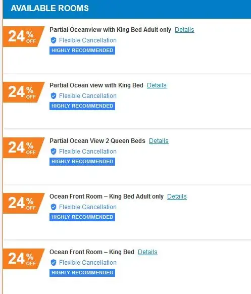 Back in September 2023 we booked 5 rooms which were all confirmed via email as the following: 1 King Bed - Oceanfront Room (for all 5 rooms). We had reviewed the Hilton Hilton Vallarta Riviera and noticed there are different rooms and price points. The difference in the rooms as per PRICELINE's website it clearly shows the difference between Partial Ocean...