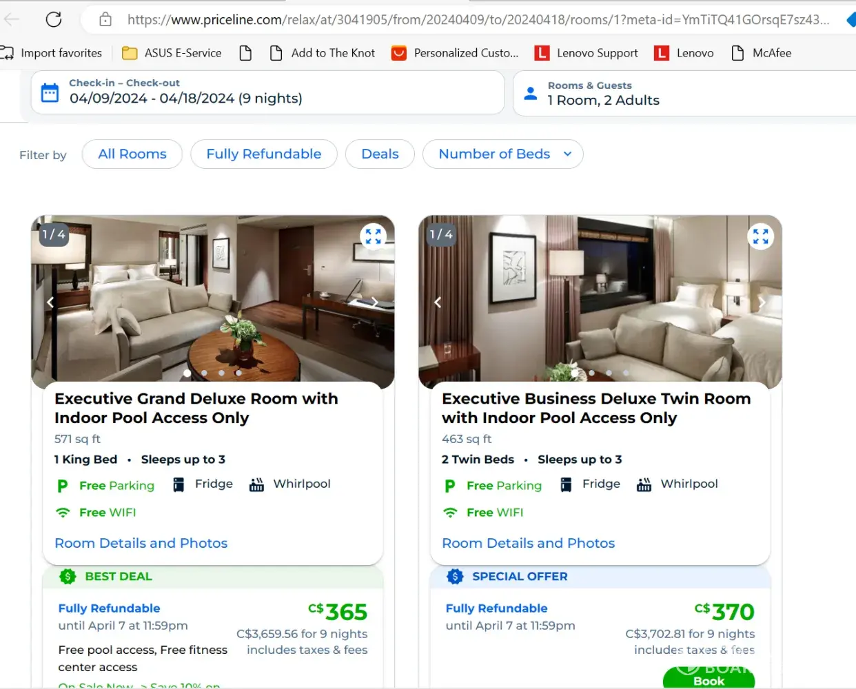 Beware if cancellation of your reservation becomes necessary. I booked the Hyatt Regency DFW via Priceline who partners with Booking.com. On the day I booked the room the Priceline website stated the rate (269.78 USD tax included) was refundable if cancelled 3 days in advance. I cancelled the reservation 12 days in advance and received another email from...