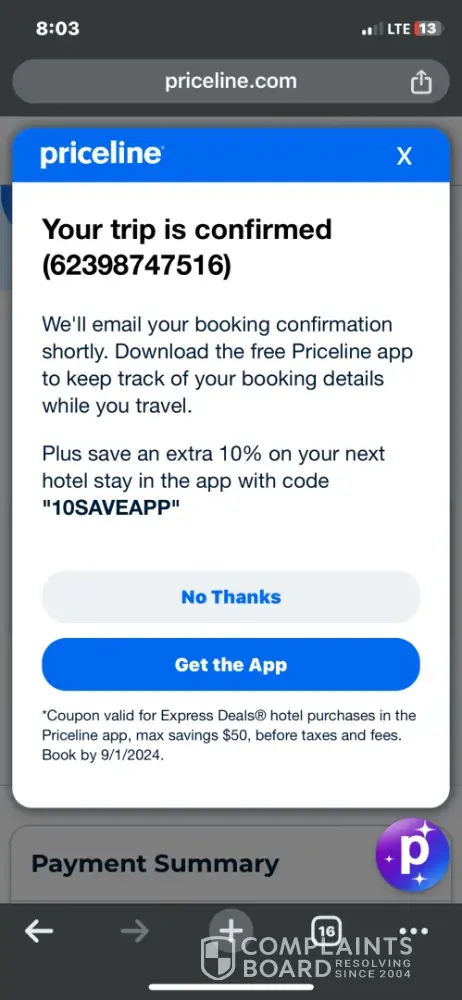 - While Priceline.com has a high level of trust, our investigation has revealed that the company's complaint resolution process is inadequate and ineffective. As a result, only 8% of 1018 complaints are resolved. The support team may have poor customer service skills, lack of training, or not be well-equipped to handle customer complaints.