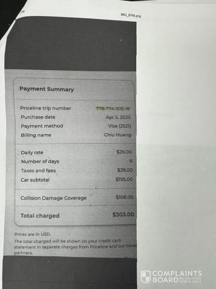 Priceline trip number 855-628-895-18 Appartamento sofà Rome Airport (FCO) Priceline somehow sold the listing to booking.com that messed up our info. and thus the renter charged us 6 times the amount Confirmation #: 6010300420NU & Confirmation #: 6010300472NU NU/horspower car rentals Miami florida: Worst experience ever 3 1/2 hr shake down of lie...