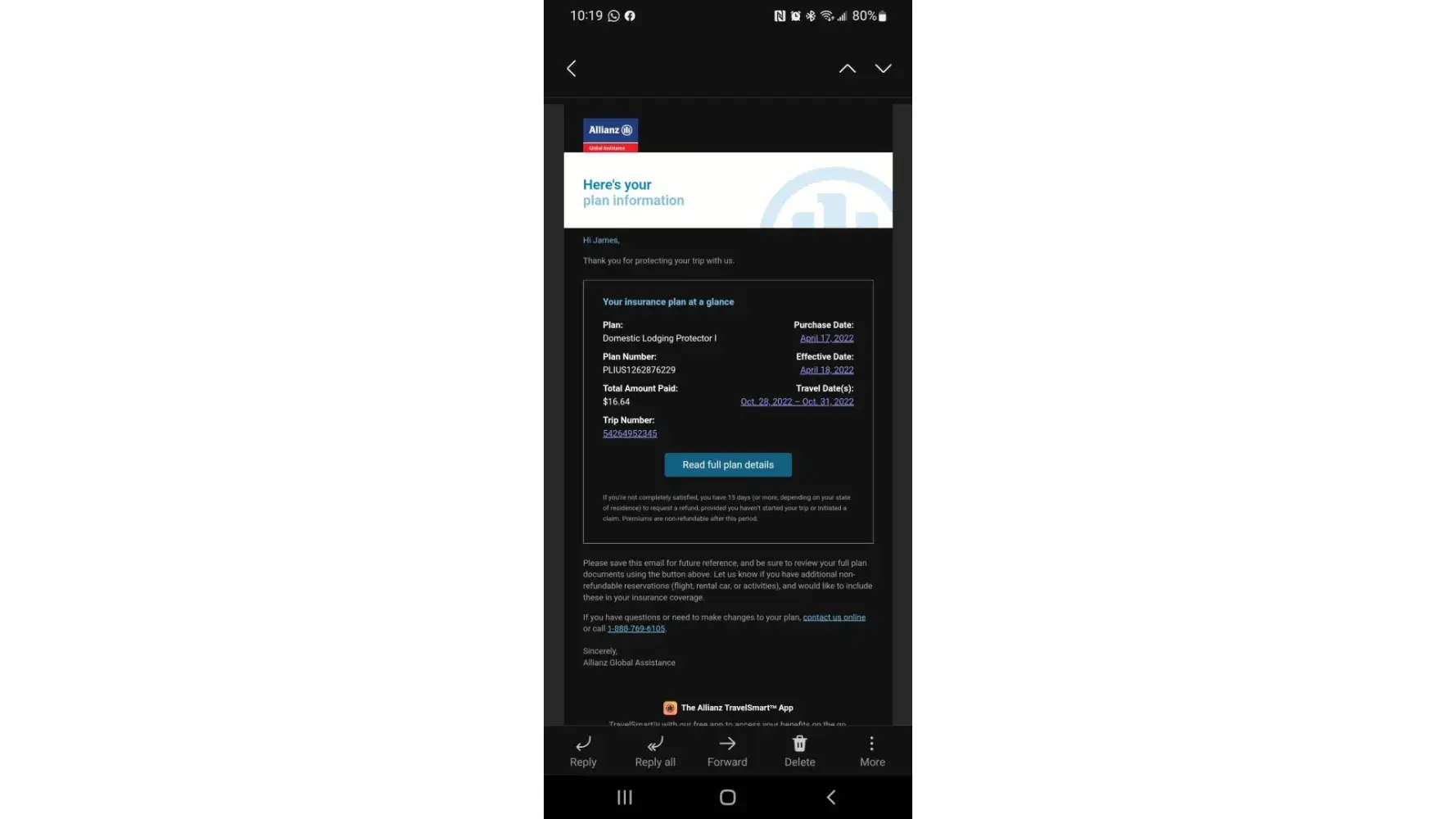 Desired outcome: Refund on travel protection plans purchased on this trip.