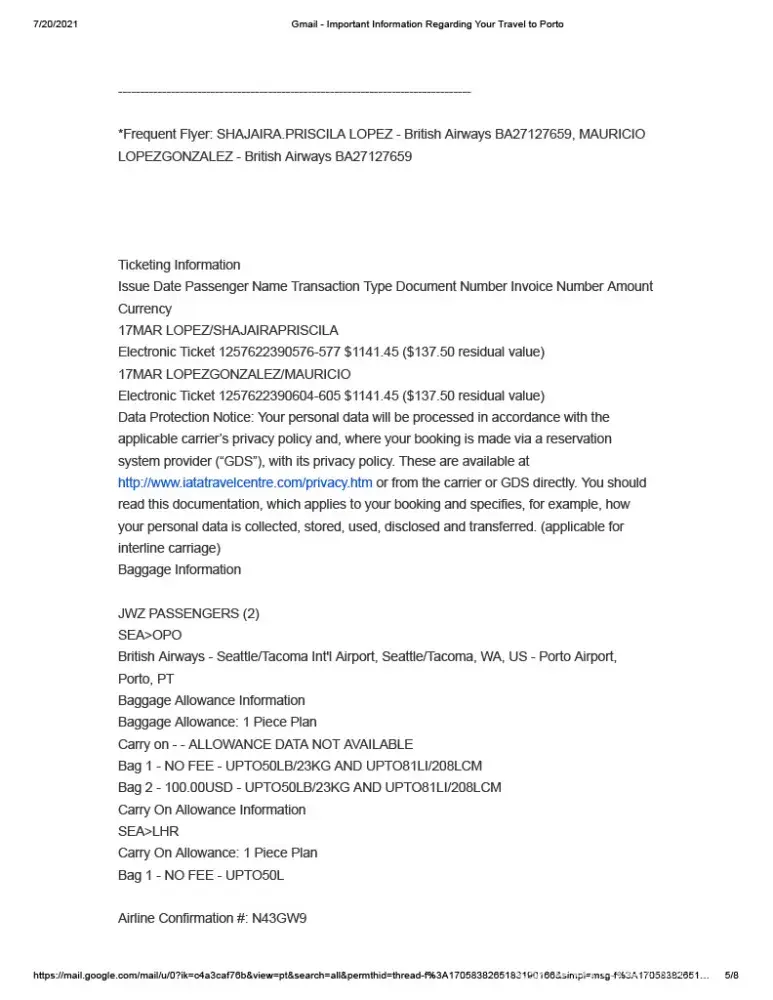 BOOKING #J0NC5Y