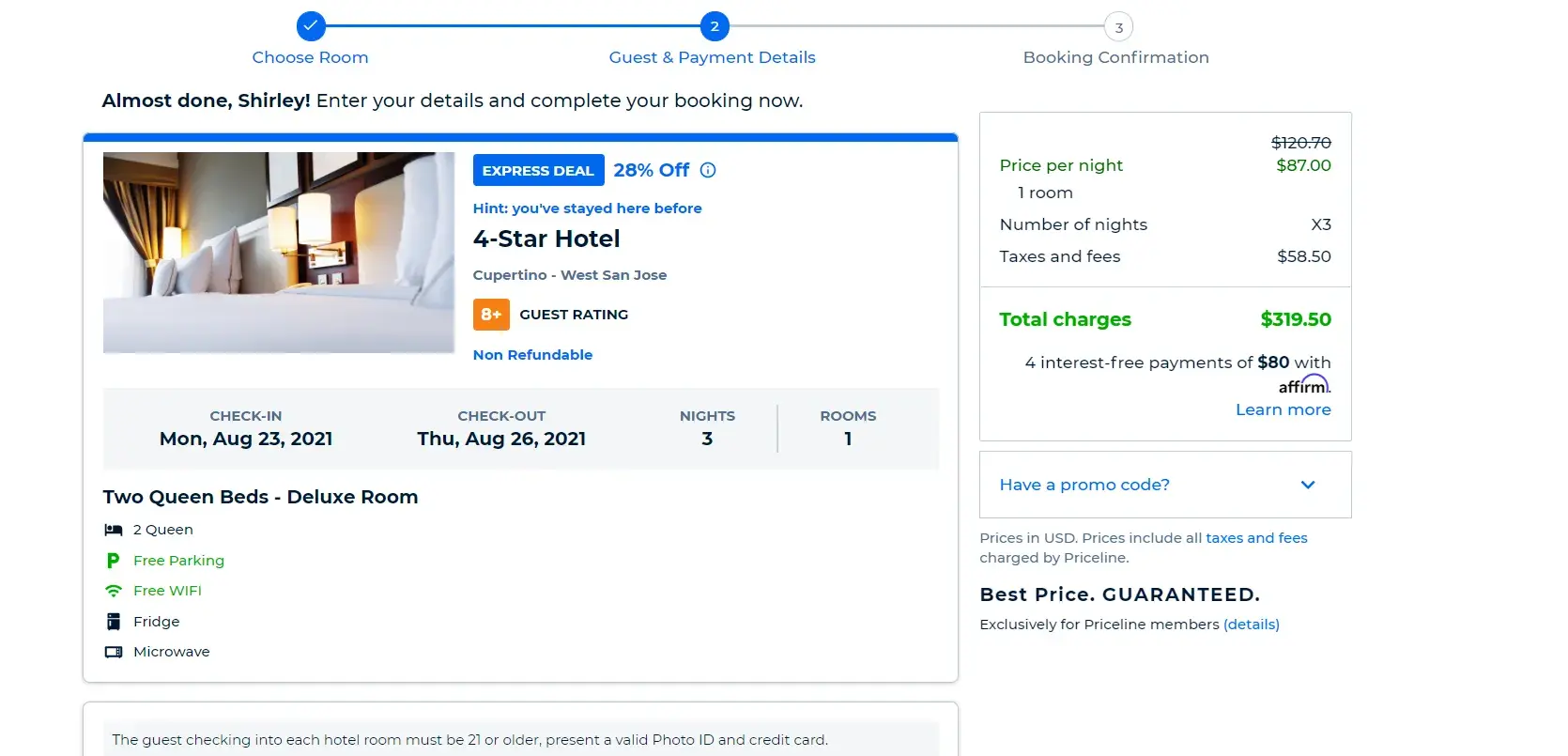 Express deal more then listed price for hotel on Priceline