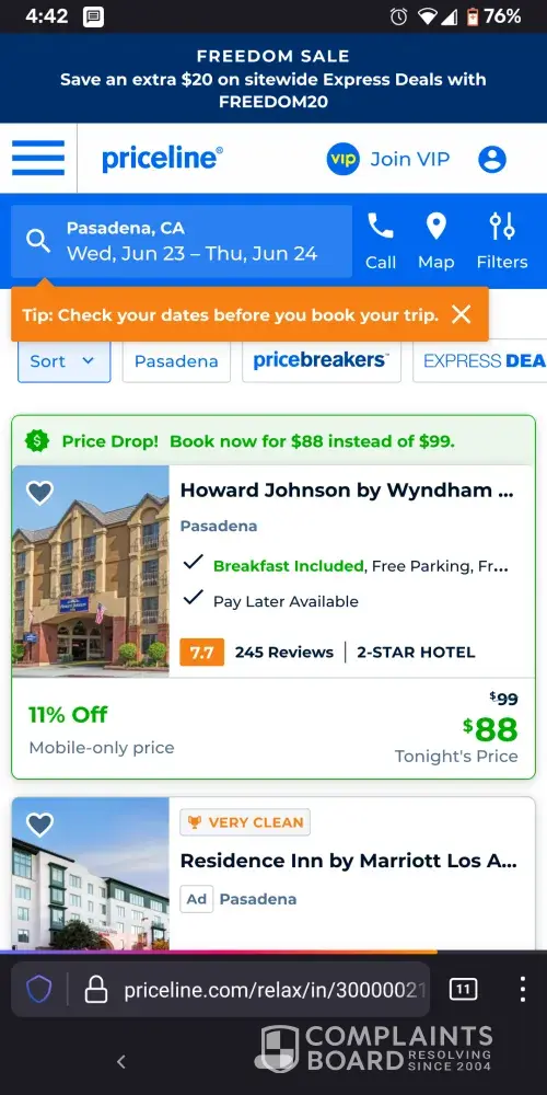 I pointed out to Priceline this is frisky misleading and deceptive advertising and they told me to pound sand. I have screenshots evidencing everything I am claiming here.