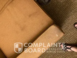 On April 17, 2021, I had the unpleasant experience of staying at a Comfort Suites (AZ110) in Tuscon Arizona. We arrived late from traveling from CA and were exhausted. If it had not been so late when we arrived, we would of refused the room and demanded our money back. Upon entering the Lobby, it reeked of Marijuana or something else. Attached are pictures of the filthy condition of our room. Stains on the carpet and furniture. We were given 1 wash cloth, 1 hand towel and 1 bath towel that was falling apart and had string coming loose. Our Hot Continental Breakfast was a brown paper bag with 1 bottle water, 1 orange, 1 fiber breakfast bar and 1 mint.
