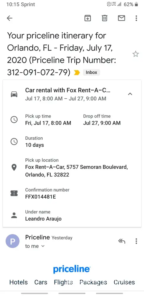 They left me in this Florida heat for more than 2 hours waiting to speak with Priceline support, the attendant Daniel was extremely rude and rude, saying he could not help at all, told me that unfortunately I would have to lose my money if I didn't accept to pay Fox Rent a Car's absurd fees. But if I rented a car at a promotional rate, why would I pay twice the rate when I pick up the vehicle!