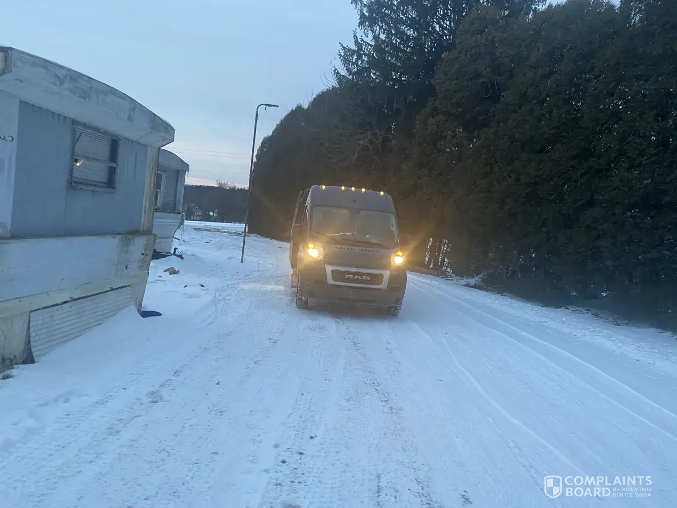 The Prime driver drove off my driveway on 9/16/2022 at about 12:20 . She made a lot of ruts in my grass. This is my septic system. At one point , I thought that she was going to flip the truck over, but I got her out without a wrecker. This will take a lot of work to fix - soil and grass seed and a lot of raking. I have some pictures. I am not a happy customer.