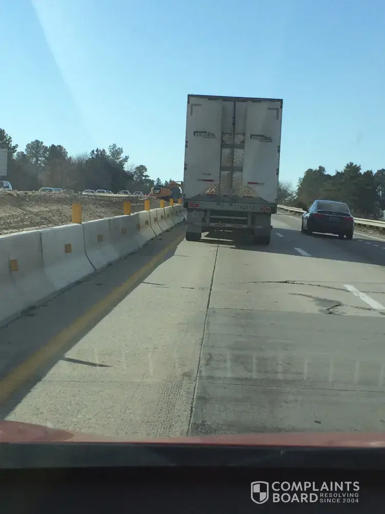 I was have way past the rig when the car ahead of had to speed up and I had to come to a complete stop all while I honked repeatedly but the continued to merge to the lane that was occupied by the other car and my truck my son started to panic in the back seat yelling that the truck was to close. This seem to not care about the other drivers around. You all need to have drivers that take into consideration that you can end a families life with your lack of care.