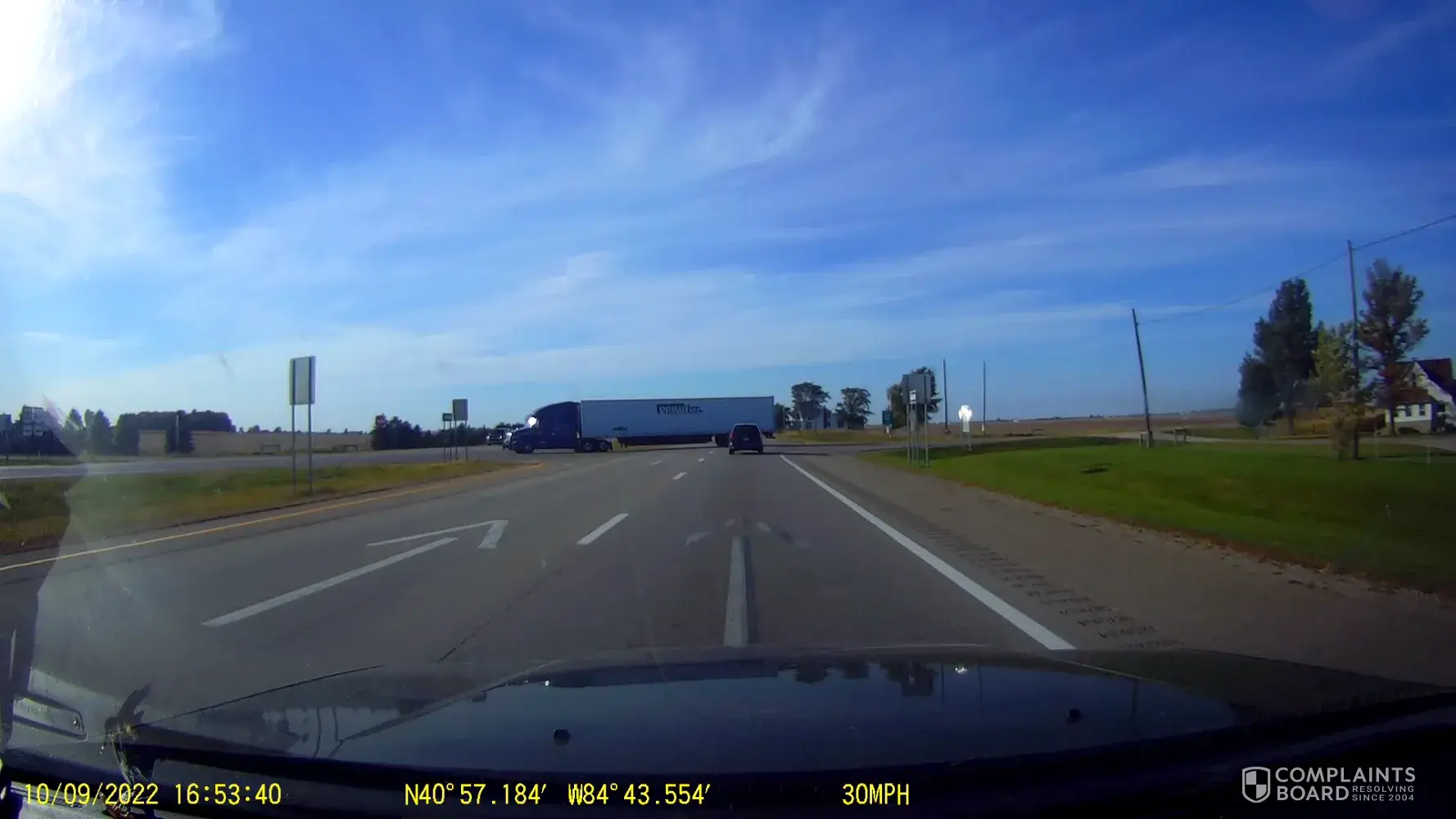 Pime Inc driver pulls out in front of traffic and blocks highway 30 on Sunday, October 9 2022 close to the Indiana/Ohio border on highway 30 just before 5pm.