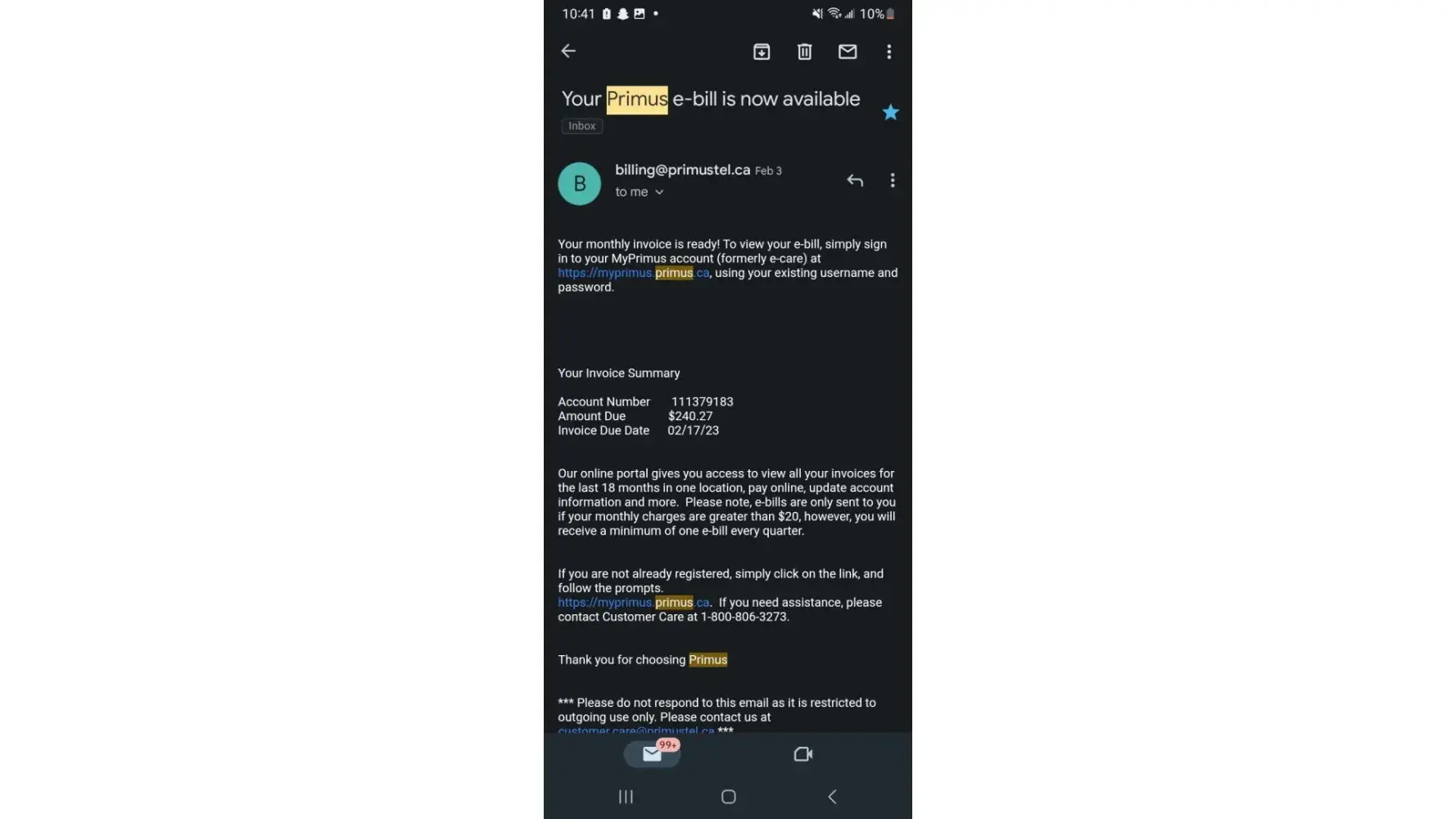 I am just waiting for July 29th to CANCEL MY SERVICE with PRIMUS, just so they don't steal 99$ penalty fee from me.
