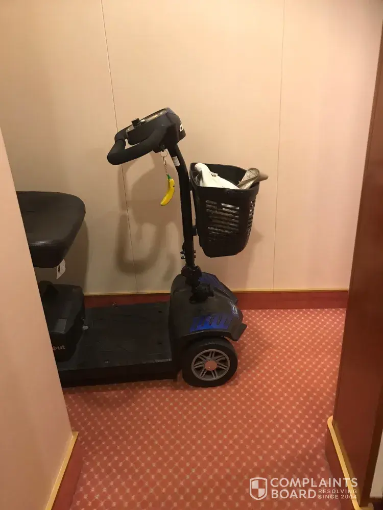 Unbelievably Princess cruises still managed to give us a unsuitable cabin, the only place we could store the scooter was against the entrance door, which contravened your own safety code.