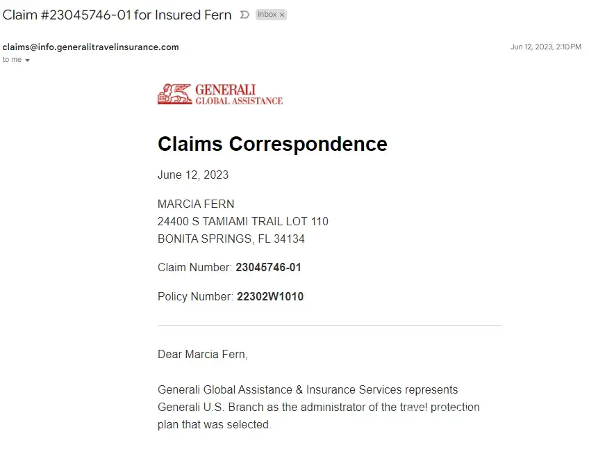 They investigated and reimbursed us most of our cruise cost. We asked Aon to return the $500 checks to cover auto and hotel claims.Now I"m being charged the total cost again and to present evidence of everything again.