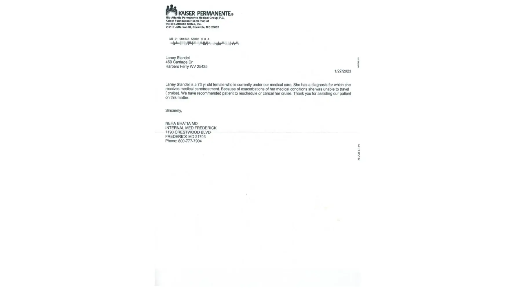 AON said that my wife did not receive current medical treatment. That is a lie.