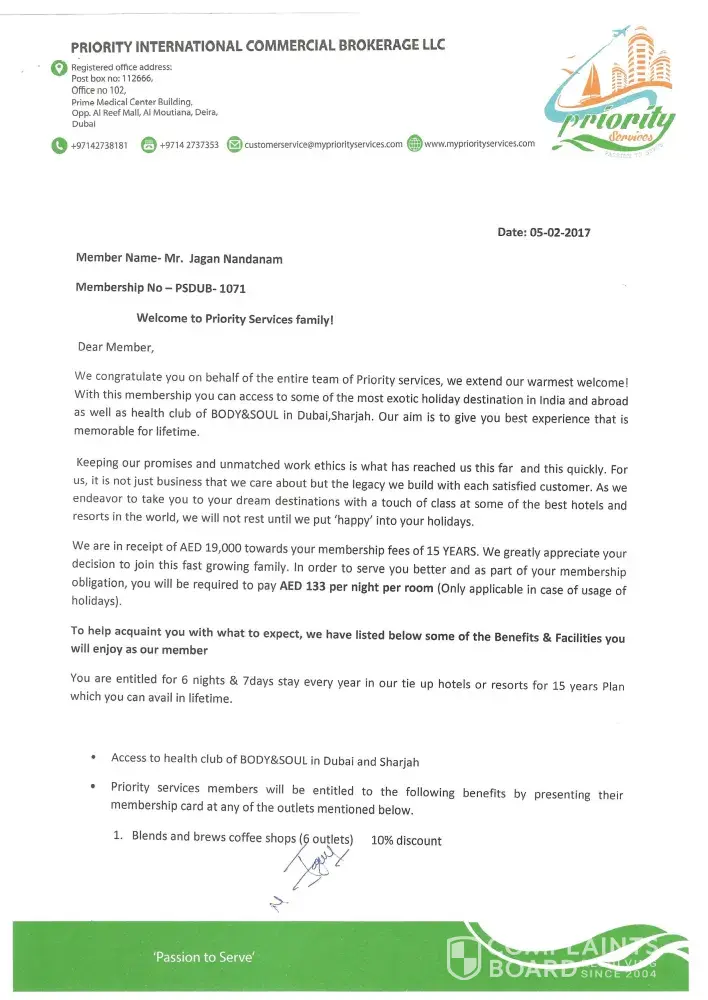 Hi my name is Anagha, i paid 15000 aed to priority service for the tours and travel packages and they promised that it is a lifelong card and we can use their service at any time by sending emails request. Unfortunately, we used only once around 2016 and after that no response and not responding to any emails or calls. Our concern is we do not want their service and requesting to refund our money. Otherwise, we have to take this to uae police for further actions.