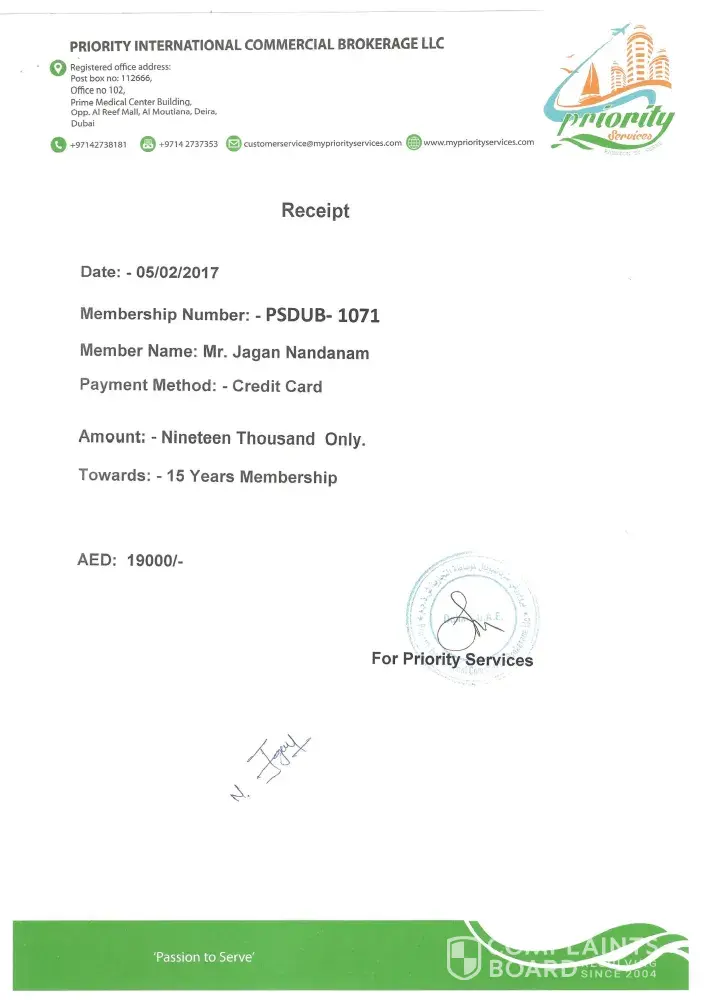 I have paid 15000 AED to Priority services for travel package for hotel accommodation for the countries around the world. Im not able to use their service as whenever I request for booking, they ask me to do the booking and promise me to get it reimbursed. But whenever I request for reimbursement they give some excuses and never reimbursed.