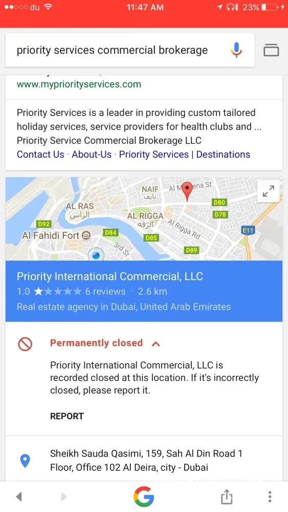 Click up if you have successfully reached Priority Service Commercial Brokerage by calling +971 04 273 7353 phone number 98 98 users reported that they have successfully reached Priority Service Commercial Brokerage by calling +971 04 273 7353 phone number Click down if you have unsuccessfully reached Priority Service Commercial Brokerage by calling +971 04 273 7353 phone number 163 163 users reported that they have UNsuccessfully reached Priority Service Commercial Brokerage by calling +971 04 273 7353 phone number