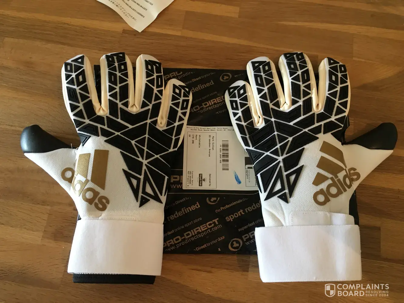 I placed an order for 2 pairs of the Adidas Ace Pro gloves, which were between £40 and £50 a pair. I payed for one pair because only one pair was available in a size 12. Once recieving this package on the morning of 12th august, I have seen the stitching is coming away from the latex on the glove, just below the thumb. I have not yet worn these and have worries that the product will break quickly due to poor production. I am very disappointed due to me purchasing from this site mutliple times and not ever having a problem. I fully trust this site and am I loyal customer however I thought that the service was consistent but it seems that there is an issue with these goalkeeper gloves. My order number is 9946695, I have taken photos of the gloves as proof that they're new and at fault. I need these gloves which is why I ordered them, so I will be using them today otherwise I would be sending them back. However I have no choice, this is why I feel annoyed and frustrated that the gloves do not meet the standard they need to be.