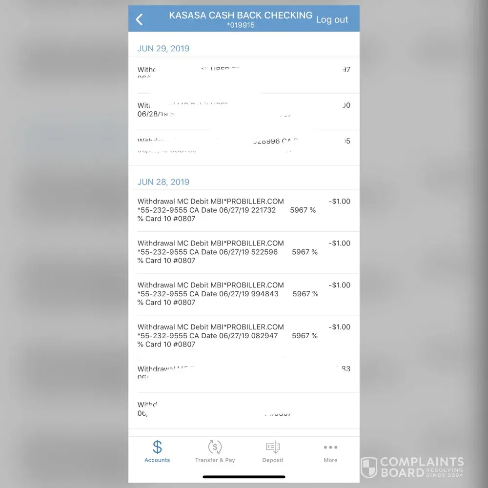 My know is Soloman Martin and Im with chime online banking. Well I have a complaint about funds that where taken out of my account from MBI probiller.com today one at 2:11am for $1.09 and another at 2:20 for $34.97. I don't know why these funds where deducted from my account. Please explain this to me. I know nothing about MBI Probiller.com and have never used their services. So if so please explain to me why the money was taken and if possible I would like a full refund. Thank u