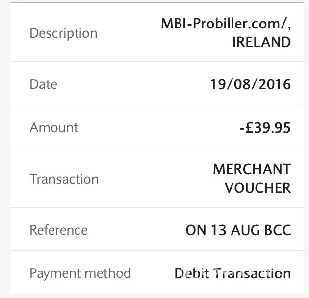 Today I was looking through my bills in order to reduce expenses and found out that MBI-ProBiller.com charged me monthly for something I don’t know. They need to return all the money they have stolen from me or they will be put in jail by my lawyers!