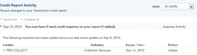 i have asked several times for procollect to act on a dispute regarding a debt that is on my trans union report. Trans union is stating that procollect has falsely place this under my ss# attached is a letter from procollect and their president Larry Gingold stating it is in fact not mine, however Trans Union has not gotten a response back and now procollect has added a credit inquiries after i disputed this and got the email from the original creditor and president which i never gave permission to do as well as it still sits on my credit report 1. PRO COLLECT $2, 585 In Collections Sep 12, 2013. i need help please