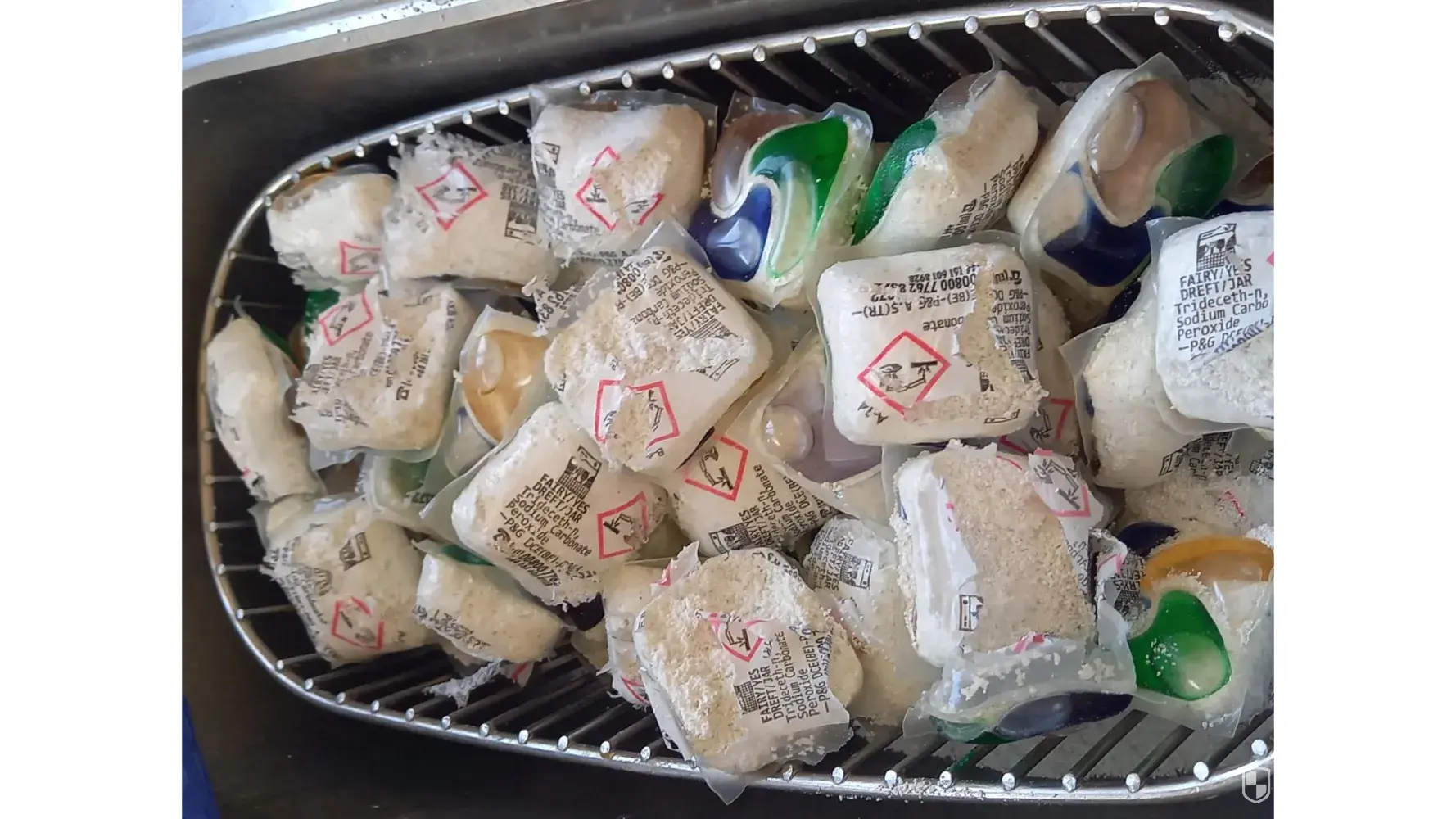 I have just opened a new bag of Fairy Platinum All in One Dishwasher Capsules and found that all capsules are split open and the powder is loose in the bag. This is the first time I have ever had such a thing and wonder if this is to do with the production of this particular bag and if this is a problem known to yourselves via previous complaints. I purchased two bags, each containing 72 capsules, and have only just had to open the second bag as 72 lasts quite a long time. Unfortunately, I do not have the receipt but these were purchased in Makro Store in Enfield. The other bag was fine. I have attached photos to show what I mean.