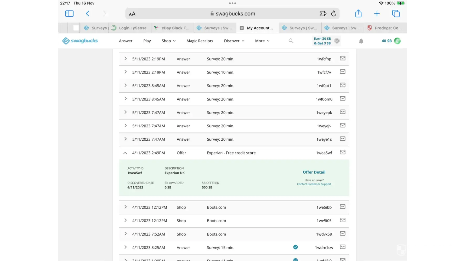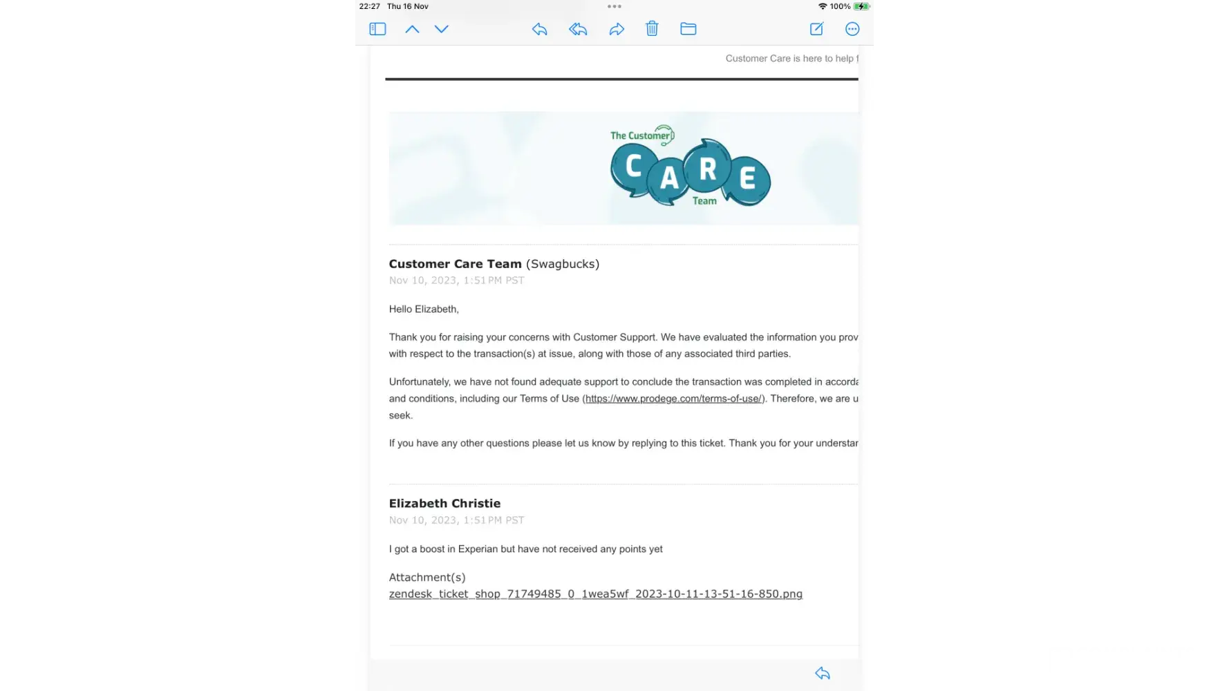 Swagbucks are also refusing me 500 points for getting a boost with experian even though it is in my visited section of my activity ledger. They say they cannot trace it i have sent screenshots but they still won’t pay me