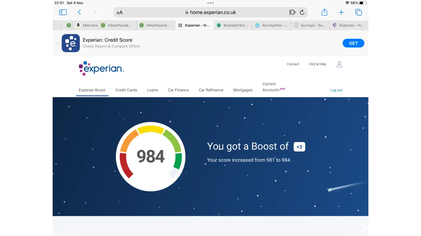 On 4 November when I logged into inbox pounds I received a message saying if i verified my email i would receive £1. Also on 4 November I received a boost from experian and its on my visited section of my activity ledger