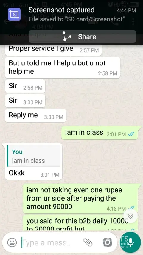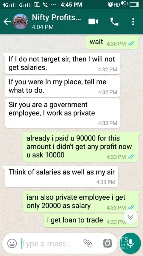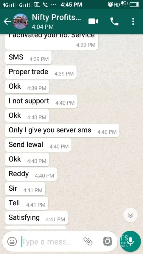 I joined in this service on june 7th after two weeks i lost my money fully. None of the trading were done by myself each and every call given by Ashish who guided me from first to last. my service duration is june 7th to september 5. now no one is answering me. They said daily basis 10000 to 20000 profit, without loss. now they block my number in whats app. They said to invest further money to retain the loss. already i have invested Rs.20000 believing that the money will be returned without any loss. But I did not get that amount also in hand to me. Up to now I have lost 54000 when I asked the money back to me they are insisting me to invest some more amount to get that 54000 back.