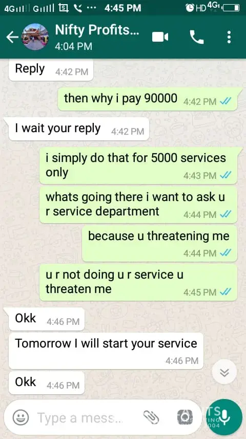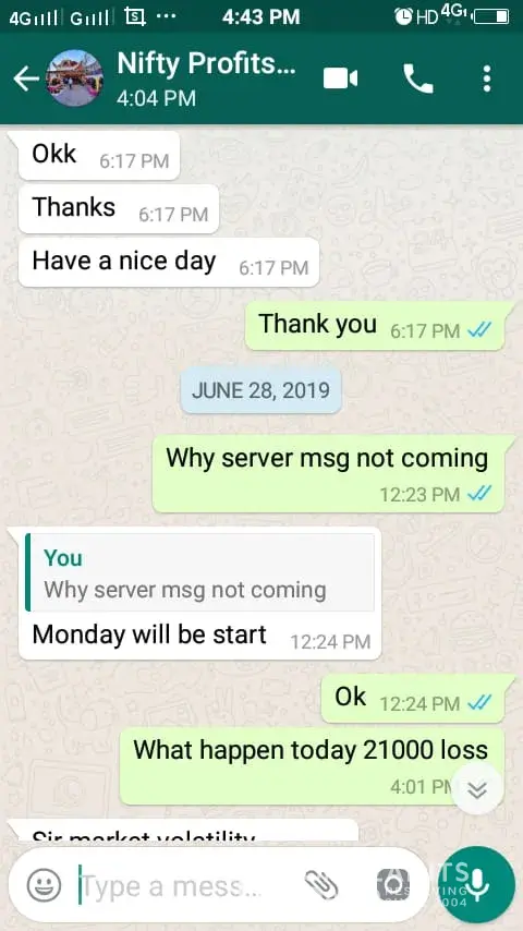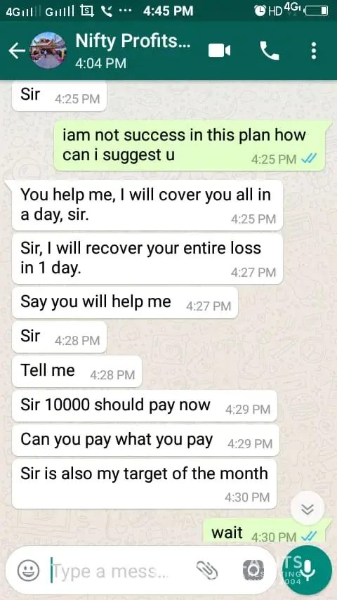 3. Third day, I got a call from Suarbh, he told that might be those people don't know market well but I am having very deep knowledge and help you to recover the lose.