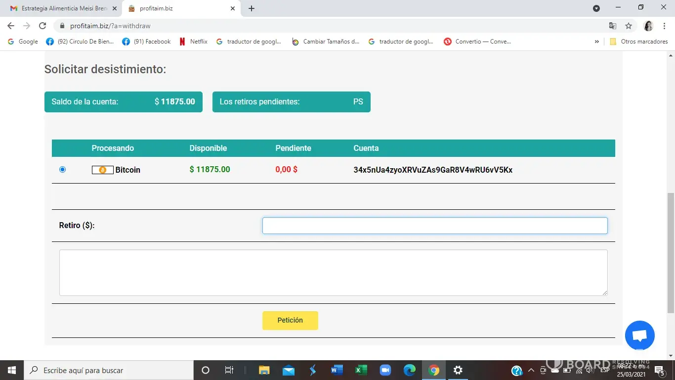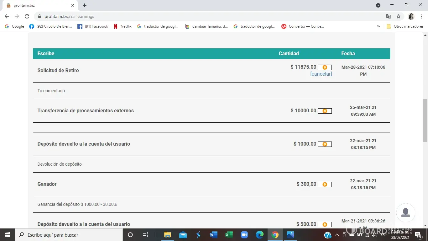 Me contactaron de la plataforma para hacer inversión, mostraron supuestos documentos y contratos, realicé mi inversión y al momento de querer ver los rendimientos y obtenerlos, me enviaron un correo diciendo que habÃa sido una afortunada ganadora de un "bono" por 4 veces lo que inverti, pero para poder obtenerlo requerÃa depositar nuevamente una suma adicional.