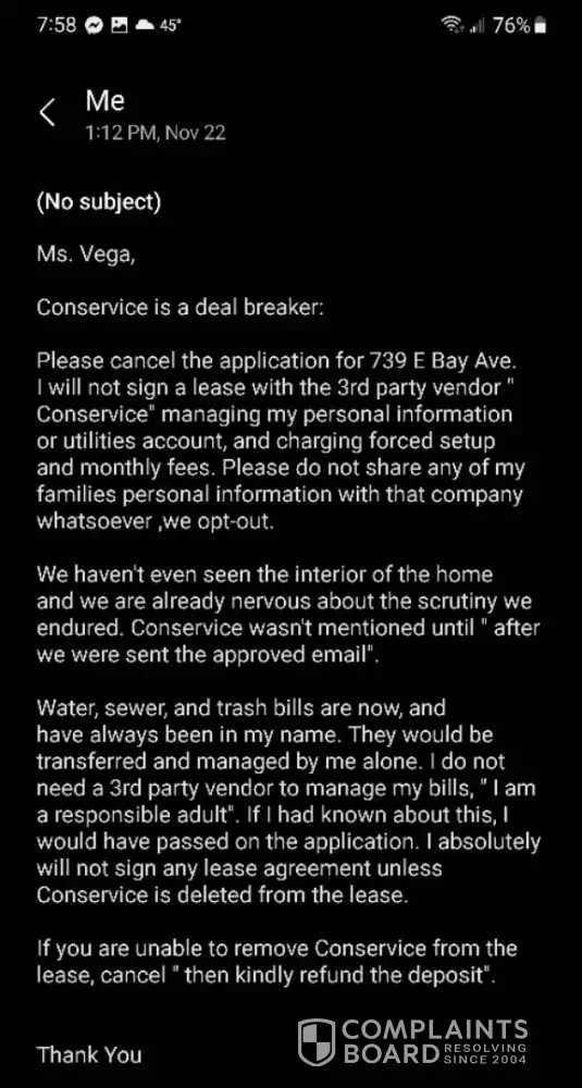 My family and I wanted to lease a home close to our previous home. I paid the $35 application fee and the $400 deposit. After receiving third-party links from Payscore and Persona to invade my personal life, it began to make me sick to my stomach. The cherry on top was all of this scrutiny: "But I was denied permission (outside of photos) to actually look...