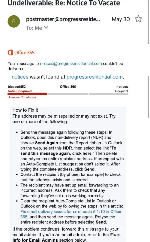 Good Day, I am a military service member along with my wife who just moved out of a Progress residential home. On 22Dec21, I received a follow-up email about a notice to vacate the property on 30Jan21, requesting an email with my orders. I responded the same day by submitting a copy of my orders, and my wife sent hers as well. My wife has been in contact with our point of contact for the move-out, emailing her twice and calling four times, receiving no response. This is unsatisfactory! On 30Dec21, we received an email detailing our move-out responsibilities, which my wife followed. During the house inspection, it was claimed that there were no receipts for cleaning, despite my wife leaving a copy and emailing the documentation. We were told we shouldn't have paid for cleaning as Progress Residential would charge us regardless. My wife tried to call vendors recommended by the company, but they all canceled, so she found a third-party cleaning service. We were provided a document to reverse charges for bathroom hardware and garbage disposal, as well as a system glitch for storm water and trash charges. Additionally, light damage and early termination fees were removed due to our active duty status, as well as the claim of insufficient cleaning. Throughout this process, we have experienced poor customer service and misinformation.