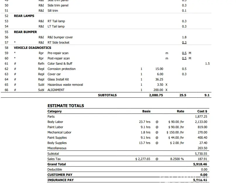 Approval of estimate to repair my truck after no fault accident.