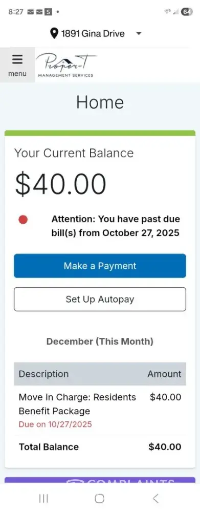 DO NOT RENT FROM THIS COMPANY. I moved into my unit on October 27, 2025 and within days I experienced some of the worst property management I have ever encountered. First, at move-in, Property T Management attempted to overcharge me for a full month of rental insurance, even though I only lived in the unit for 5 days of that month. I immediately notified...