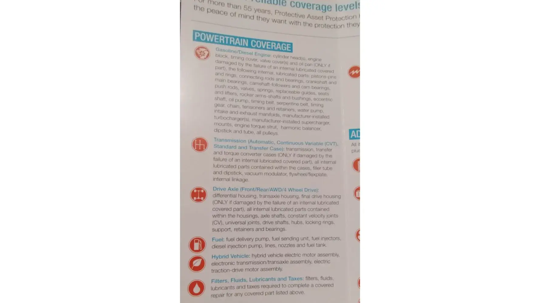 Took my wife's Durango to the shop to have work done and the shop tells me that Protective Asset Protection will not pay for the fluids needed for the repair as he was told by the person he called. I have the powertrain coverage and it does cover it. As it states, " filters, fluids, lubricants and taxes required to complete a covered repair.. So on top of my deductible I also had to pay an extra $110 that I shouldn't have had to pay.