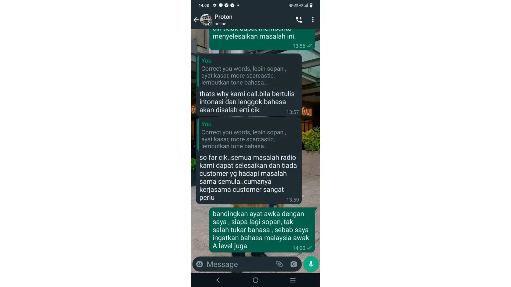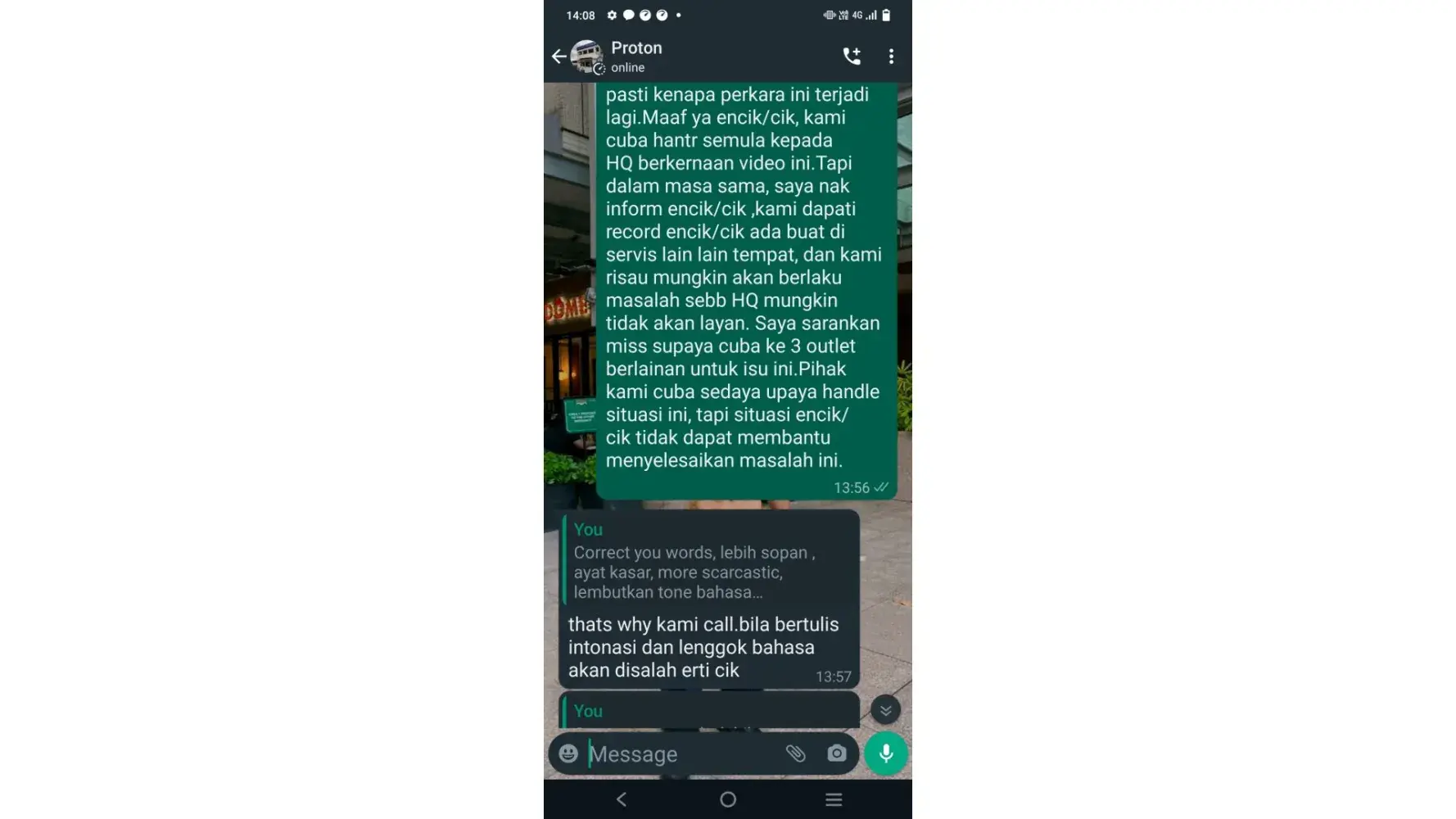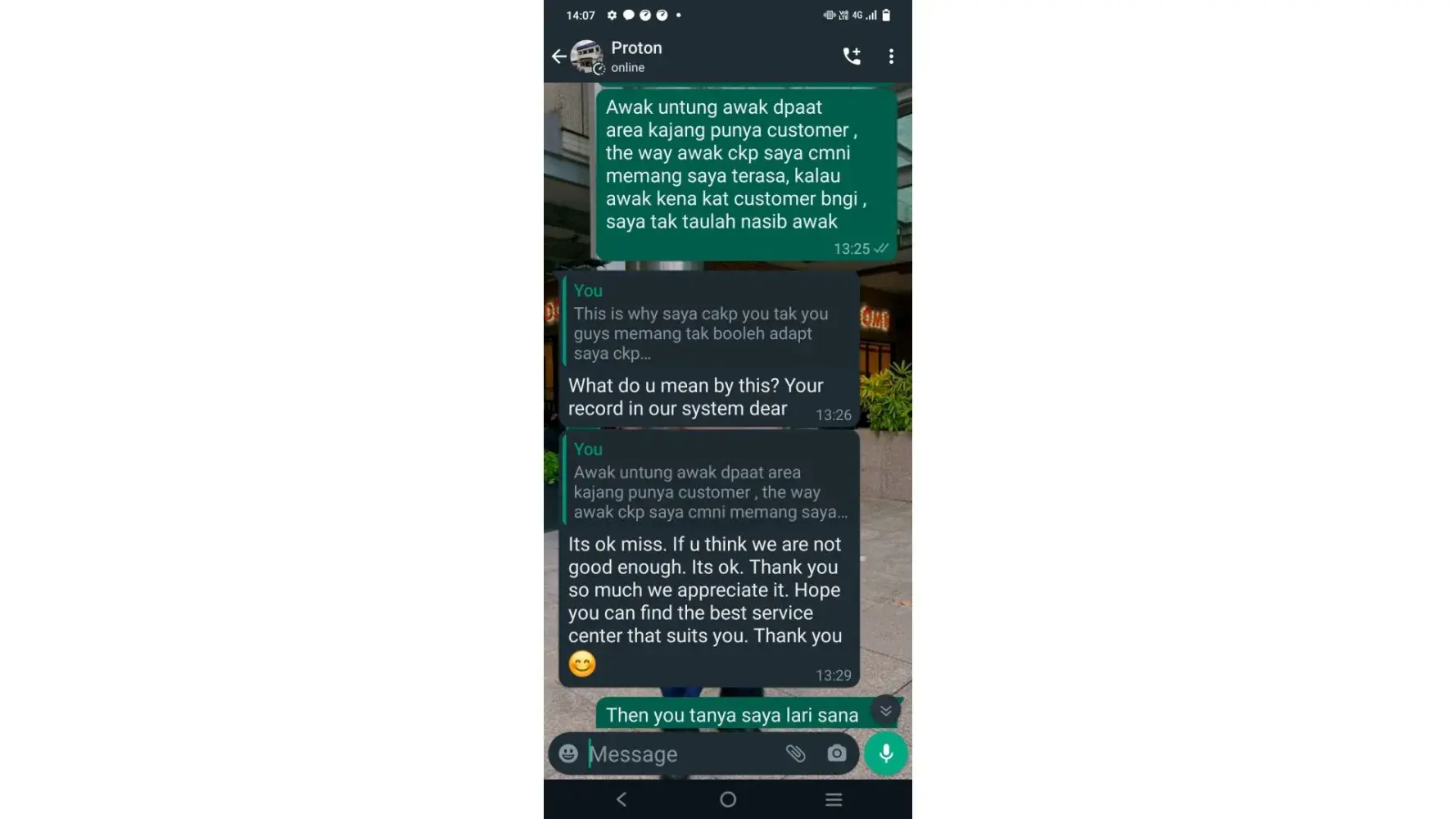 Proton Holdings I've heard for a long time that your company's service staff has a bad attitude, and I finally know it today.