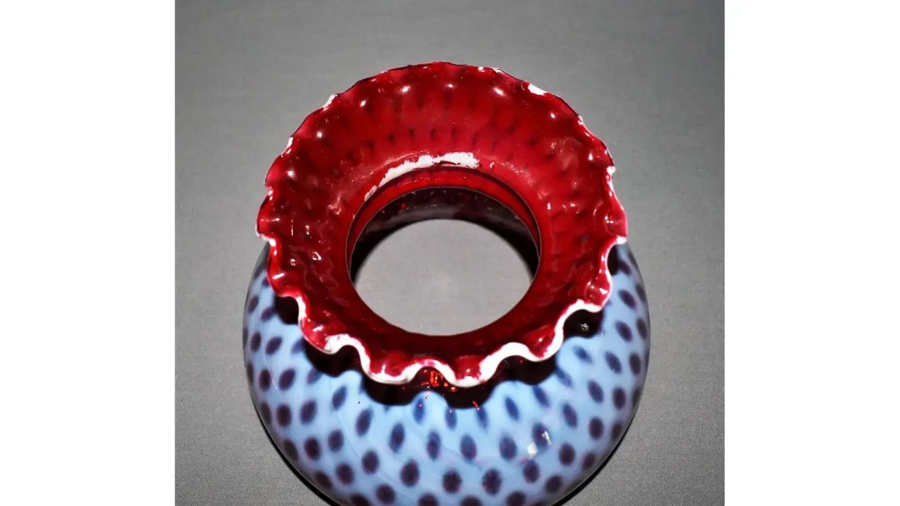 Won items at online auction from Young's Consignment Center, Canton Ohio and the most expensive was described as: Lot #37 "Rare antique Fenton student lamp" - one picture. The shades are rare but not what they appeared. They were cranberry opalescent shades but in reality they were Fenton white opalescent that was painted red on the inside. When I returned home and washed all the glass I purchased the "cranberry started to flake". It was obvious that the shades had been painted.