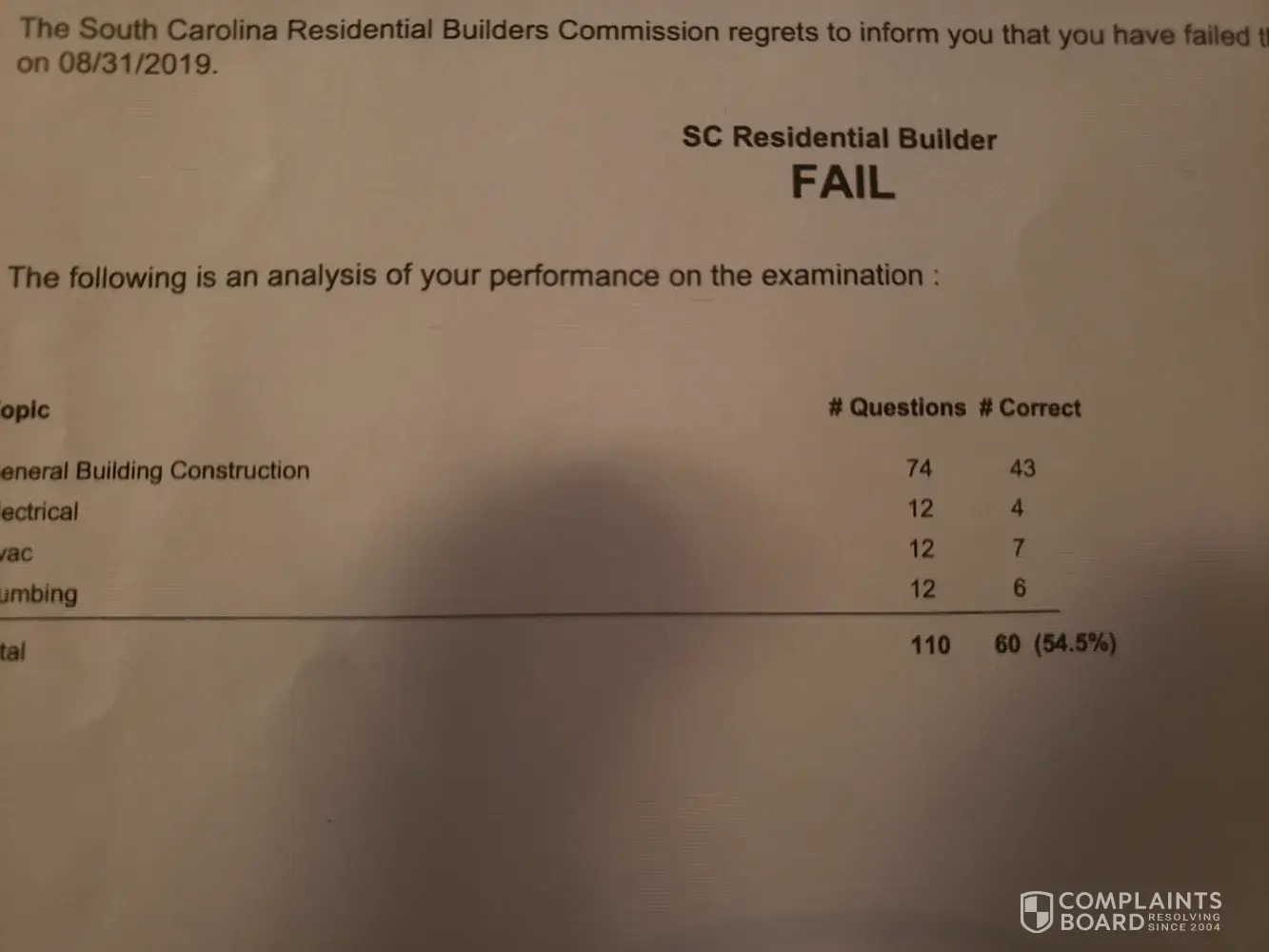 Residential builders exams, the residential builder exam has 120 questions when I sat down, but they only score you on 110. I literally looked up 80% of my questions to find the answers and I still missed 60 out of 120 or as they print it I missed 50 out of 120. This is my 3rd time taking the test, I missed more this time than on my second try. Something isn't right. I'm positive I got atleast 80 answers correct. Because I found the answers in my books. what can I do?