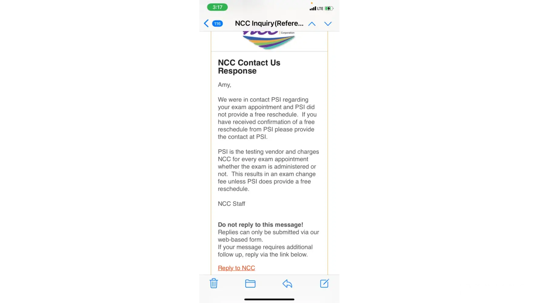 On September 21, 2022, I was scheduled to take my C-ELWB exam via live remote proctoring. I made sure several days before the exam to perform a system compatibility check with my laptop (which checked out) and again on the day of the test. . . no problems there. My test was scheduled to begin at 1900. I logged on 30 min early to film my surroundings and take a picture of my ID. Following this, the proctor came on and wanted to do a manual check starting with my ID. They were unable to visualize the expiration date on my ID. I accessed tech support, twice. They attempted to maximize the resolution on my camera to no avail. By the way, there is NO WAY of knowing beforehand if this will be an issue. Keep in mind, my camera is fully functional and checked out twice beforehand on a system compatibility check. I then spend an additional 1.25 hours holding the ID up to the camera in different rooms, with different backgrounds, in different light, with a flashlight. . . in the end, the proctor was unable to see the tiny expiration date. I even (on camera) took a picture with cell phone and blew it up so the date would be visible. The proctor said she couldn't have a digital picture of the exp date which was sort of a laugh, since a digital picture is exactly what was happening through the laptop camera. In the end, after nearly two hours of issues, we decided that I should take the test at an in person facility. I was told that they were escalating the issue up the chain of command and that I should await rescheduling instruction which would arrive in 3-5 business days. I then received a notification from the NCC that I could reschedule. . . when I went to do this, they wanted another $125 to reschedule. I messaged them that I was unclear about why I was being charged to reschedule. They messaged back that PSI said it was a dysfunctional camera and that I was marked "absent" from the exam. I replied back that my camera is fully functional and checked out on system compatibility not once but TWICE and that it is very well documented that I WAS present for the exam and did literally everything I could from my end to resolve the issue. They said that I needed to contact PSI, which I then did, multiple times. This is a frustration because nobody speaks clear English and they are reading off of a script. PSI said that following the escalation, that I needed to refer to the NCC rescheduling directions. . . and right back to the $125 dollars. I let them know that I was doing that and that they needed to waive the fee for rescheduling. . . they were like, "No can do. . . refer to the NCC rescheduling directions". . . and round and round we go. Incidentally, if there is a technical issue at the in-person facility like, for example, a power outage or other technical issue, there is indeed a pathway for PSI to simply reschedule a test without a fee. . . it can, in fact, be done. What this is, is a faulty platform being peddled and then fraudulently utilized to collect more money from people.