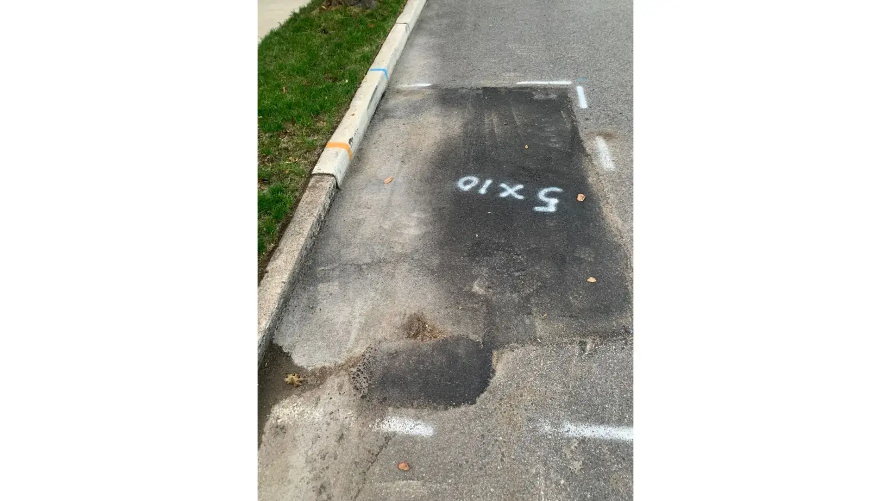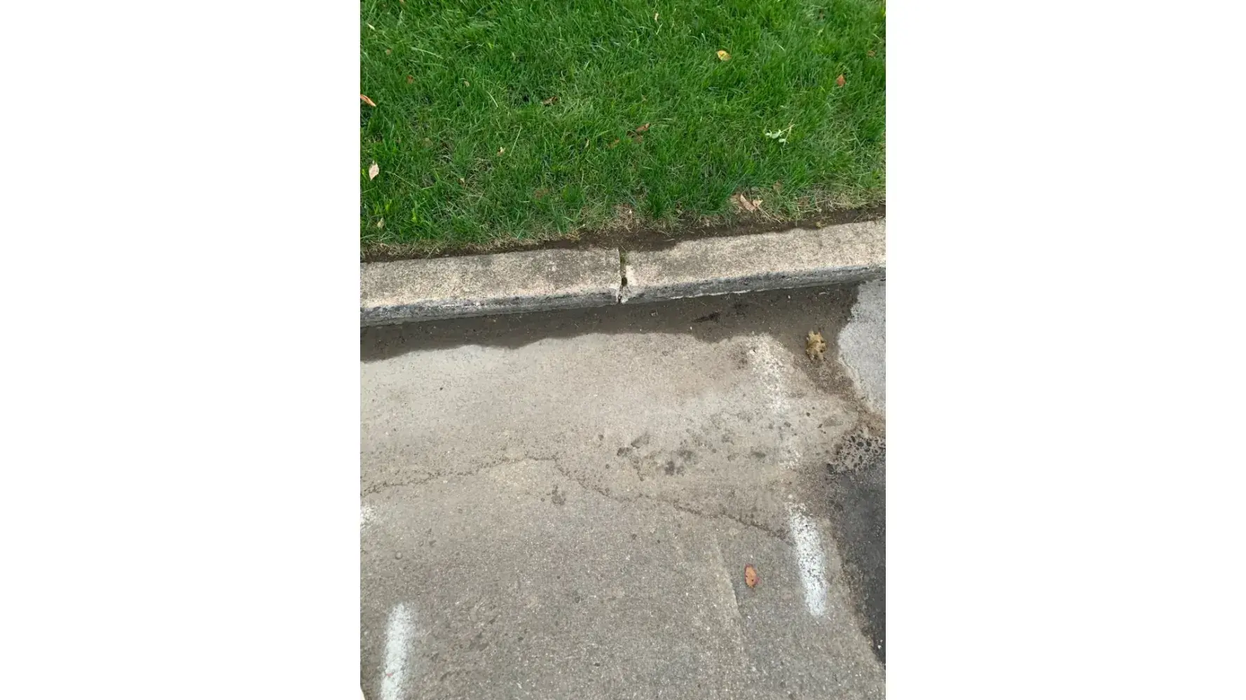 Also, the curb in front of my house has been destroyed. I have included photos that show that the curb has been broken and moved, so it is not straight any longer.