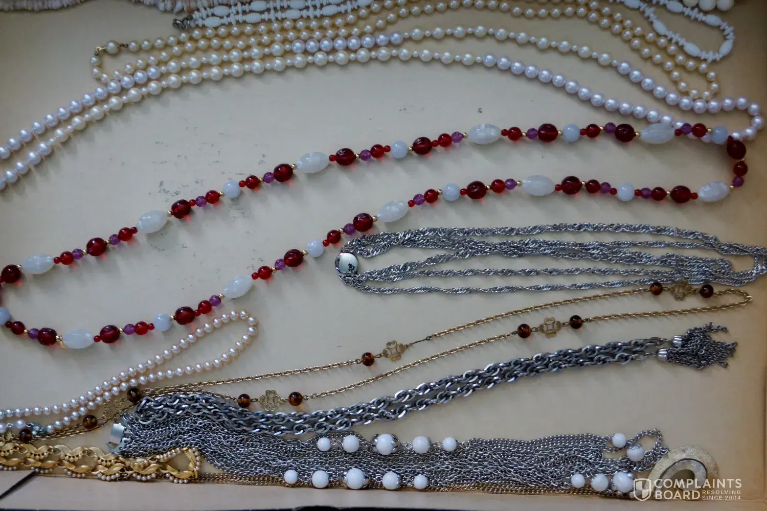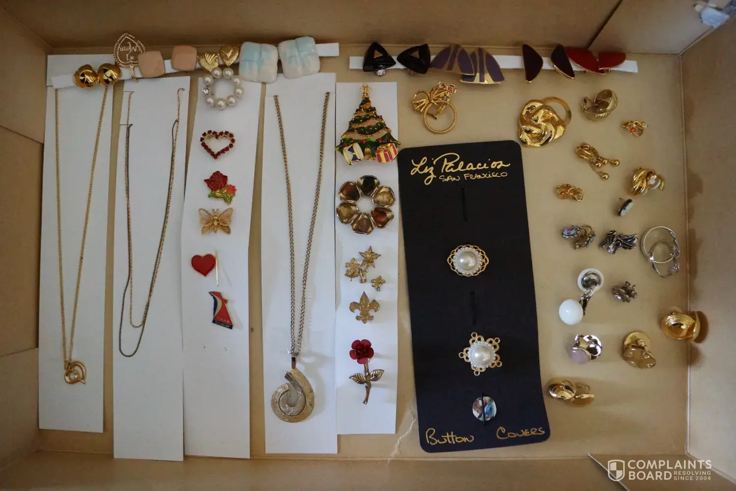 I haven't discovered everything that was taken yet. I had kept old family heirlooms and memorabilia in there. I do know that they emptied the 4 jewelry boxes that contained my aunt's jewelry because we found those strewed and empty around the room. I do have photos of all of the jewelry. I have attached some of them.