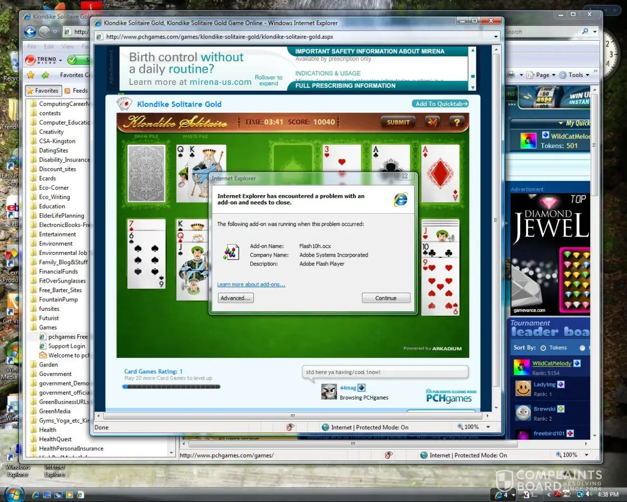 Over the last several weeks, I have submitted several technical issues to pchgames.com. After receiving their stock answers many times, I finally called the help line. No luck there either. The gist of the response was "upgrade to the latest flash or we can't help you". I was at Flash 10.1 but a few updates below the current (10.1.8xxxxx).