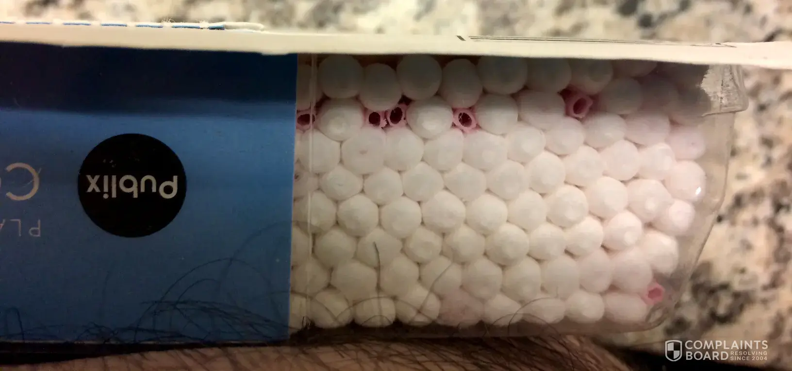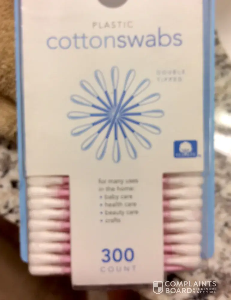 I purchased two boxes of your qtips. One for me and one for my daughter. I use these to clean my ears, and i pulled one out of the box and not looking at the qtip inserted it into my ear to clean. I ended up scratching my inner ear to the point that it bled. There was not cotton on the tip. attached is a photo of the side of the box, and I ended up taking the others out. My daughter thankfully checked as she has a baby. She had problems with hers as well.