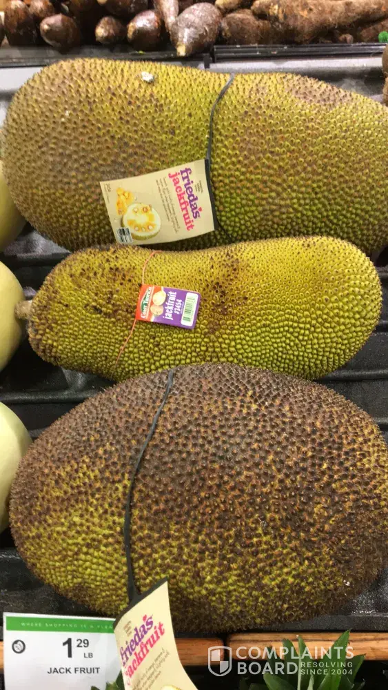 At 8:30 am, there are 3 old jack fruits on the shelf. One in a state of decay. The two other ones are also overripe because they have been there for almost a week. Nobody buys entire jack fruit.