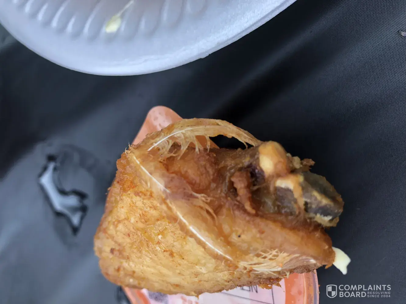 As the parents and I fed the kids today at a picnic to get all the band and color guard kids together. I noticed that there was feathers on one of the pieces of chicken. It was disgusting.