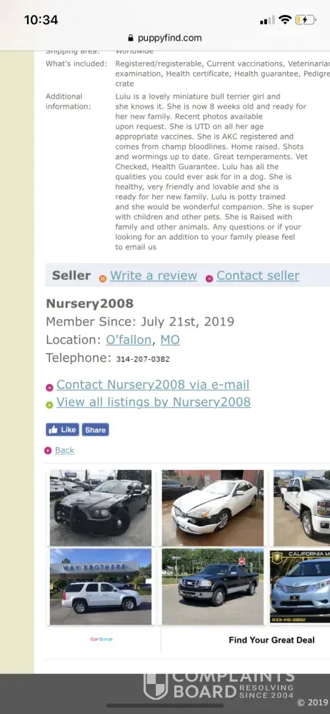 This is PuppyFind.com Customer Support. I am sorry that you are not happy with the services the website provides. PuppyFind.com is a bulletin board service, like the classified ads in a newspaper, and is meant to be a means to initiate the sale and so we do not get involved in the terms/completion of the sale. We provide a space on the internet for people with a common interest to contact each other. Every seller/breeder goes through an approval process but as stated in our Terms of Service policy, we are not able to offer any guarantees that the individuals listing on the site are reputable breeders. We do offer a feature called Buyers Tips located at the top of the website. Internet fraud is on the rise, so these tips are here to help protect you when buying online. To review the Buyer Tips click here: http://www.puppyfind.com/buyer_tips/. Also, if you have purchased a dog from the seller you can leave a review on their account. If a seller has been cited or convicted of animal cruelty or neglect please forward the police reports or news articles documenting the citations and the appropriate action will be taken. You can forward these documents to support@puppyfind.com. If you have any further questions, please don't hesitate to contact our Customer Support through the website and we will be happy to assist you the best we can.